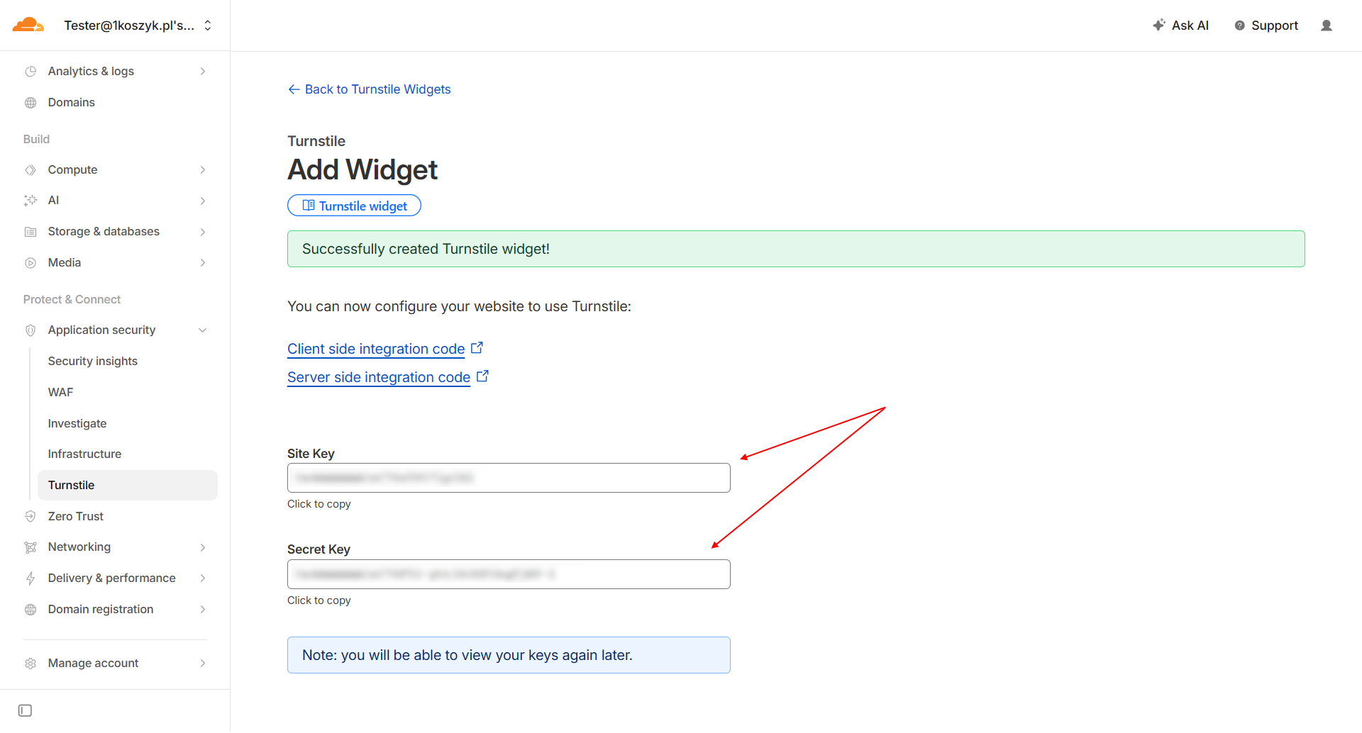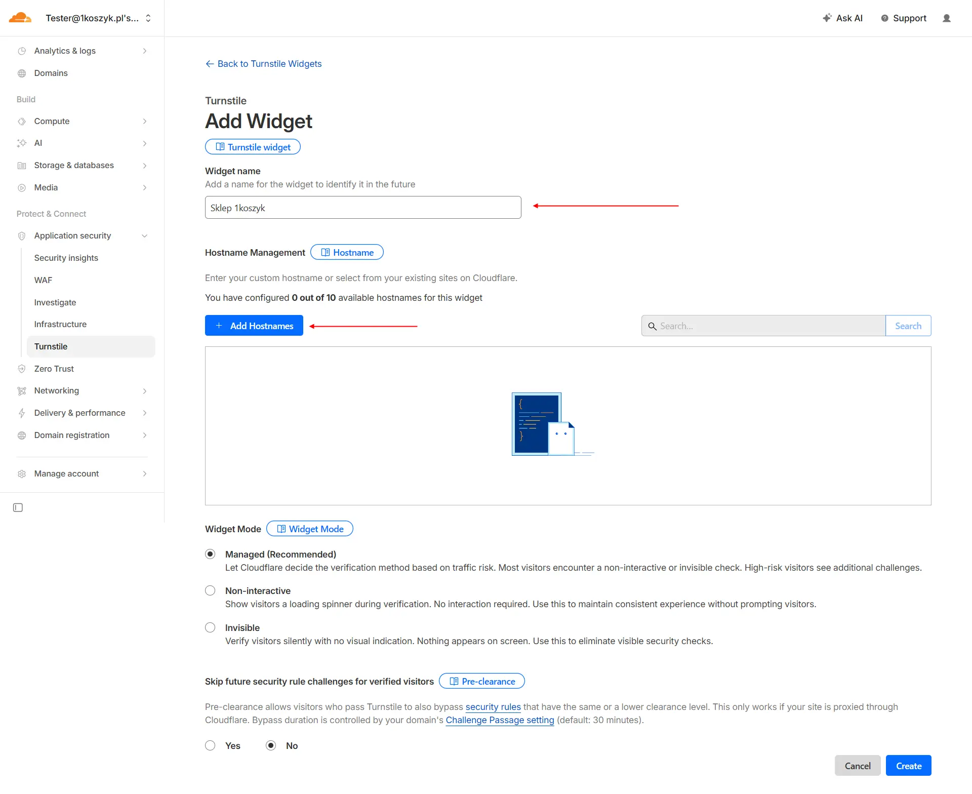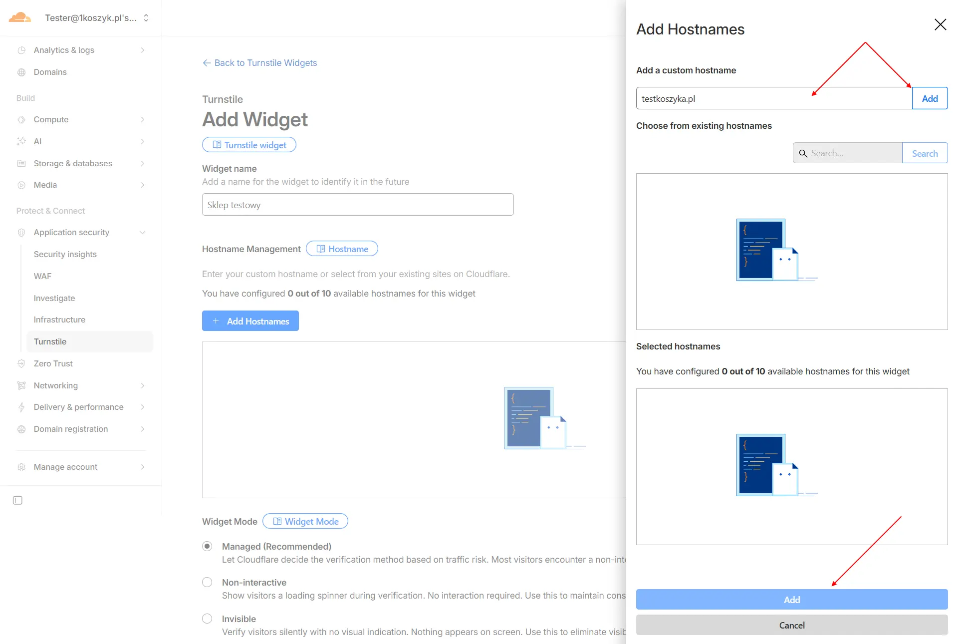 Instalacja widgetu Cloudflare Turnstile dla własnej domeny sprzedawcy